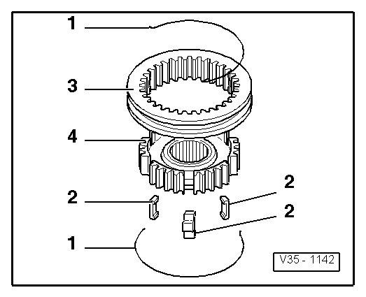 The tabs -1- lock in the openings -2- in the synchronizer hub.